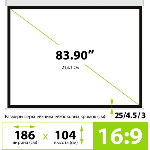 Модель CS-PSW-104x186 Вес 8.5 Бренд CACTUS PartNumber/Артикул Производителя CS-PSW-104X186 Семейство Wallscreen Тип установки настенно-потолочный Тип по конструкции рулонный Ширина экрана 186 Высота экрана 104.6 Эффективный угол обзора 160 Особенности покрытия белый матовый Диагональ экрана 83.90 Формат экрана 16:9 Тип проекции прямая Размер белого поля полотна (см) 104x186 Размеры черной кромки (см) 43 Размер корпуса экрана (см) 205.8x7.2x9 Размер упаковки (см)