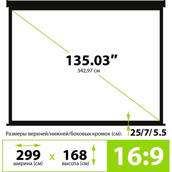 CACTUS Экран Wallscreen CS-PSW-168x299, 299х168 см, 16:9, настенно-потолочный белый