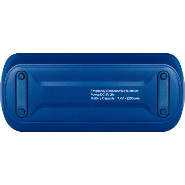Портативная акустика Bluetooth , мощность (RMS) - 20 Вт, питание USB, Li-Ion аккумулятор, емкость аккумулятора - 2000 мАч, диапазон частот - 60–20000 Гц, светодиодная подсветка - 7 цветов, функция Hands free, дополнительный AUX-аудиовход.