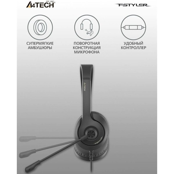 A4TECH Наушники с микрофоном Fstyler FH100i черный 1.8м накладные оголовье (FH100I (STONE BLACK))