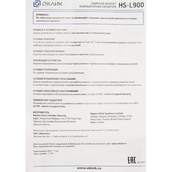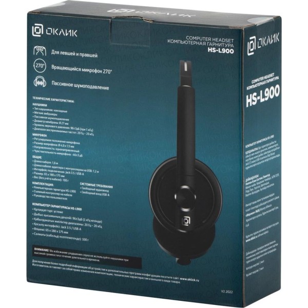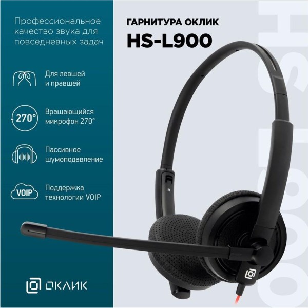 OKLICK Наушники с микрофоном Оклик HS-L900 черный 2.8м накладные оголовье (1532022)