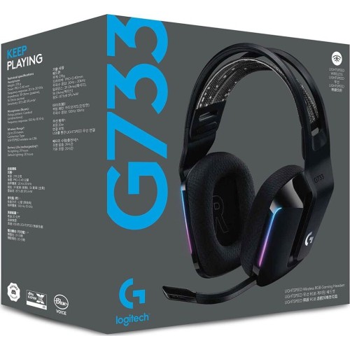 LOGITECH Гарнитура игровая G733 Lightspeed, для компьютера и игровых консолей, накладные, радио, черный [981-000867]