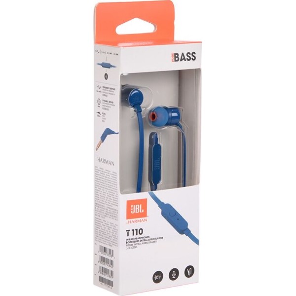 Наушники вкладыши проводные JBL TUNE 110 BLUE Наушники (JBLT110BLU)