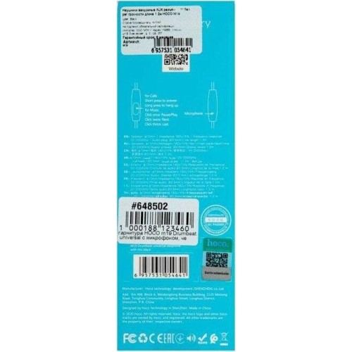 Спикер: 10мм. Материал: ABS, TPE. Чувствительность: 95дБ. Импеданс: 16Ом. Диапазон частот - 20-20000Гц. Длина кабеля: 1.2м. Конфигурация штекера: L-образный Jack: 3.5mm. Микрофон: контроллер с микрофоном.