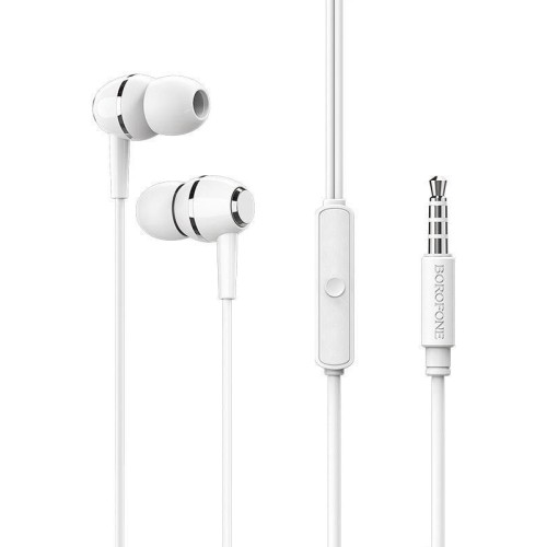 Borofone BM36 - отличные наушники в стильном дизайне. Благодаря наличию технологии подавления эха и шумов даже в шумной обстановке будет обеспечена замечательная слышимость. Качественные комплектующие позволяют добиться высокого качества звучания даже при длительном проигрывании музыки. Микрофон обладает высокой чувствительностью и может уловить даже шёпот. Мягкие эргономичные силиконовые амбушюры плотно приникают к поверхности уха. Получайте удовольствие от звучания без посторонних звуков. Кнопка управления удобно расположены на кабеле, вам не придется доставать ваш гаджет из сумочки или кармана.