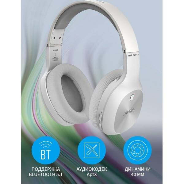 EDIFIER Наушники W800BT Plus, 3.5 мм/Bluetooth, накладные, белый