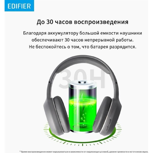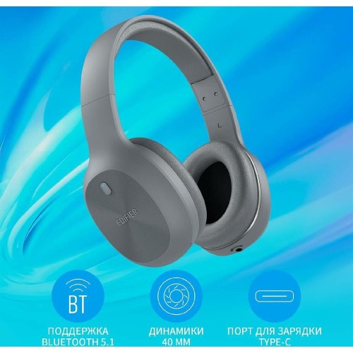 EDIFIER Наушники W600BT, 3.5 мм/Bluetooth, накладные, серый