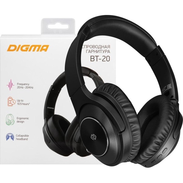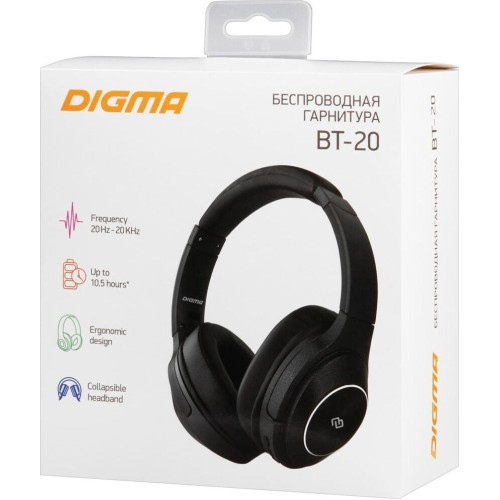 DIGMA Наушники BT-20 ANC, Bluetooth, накладные, черный [bt20]