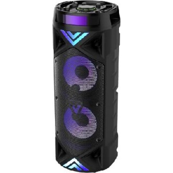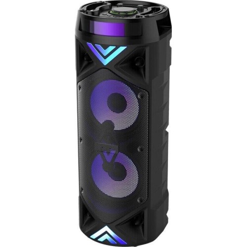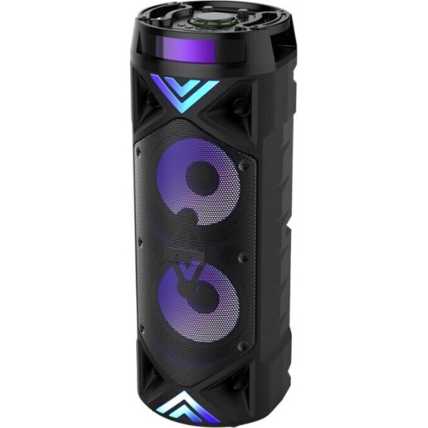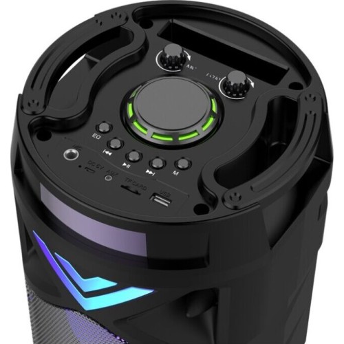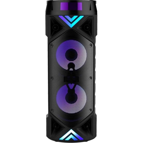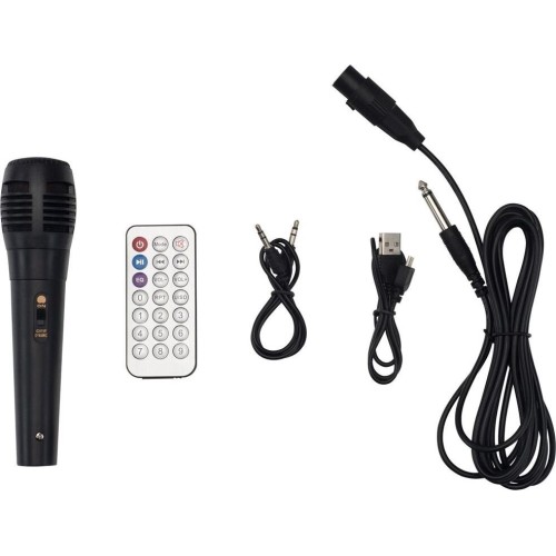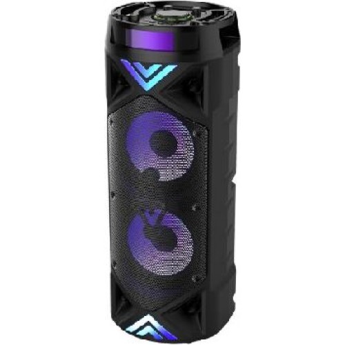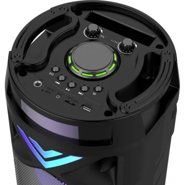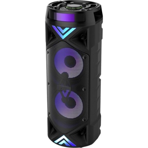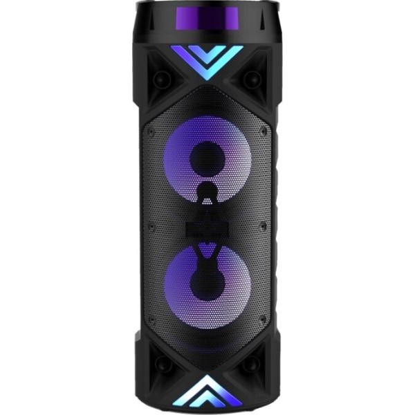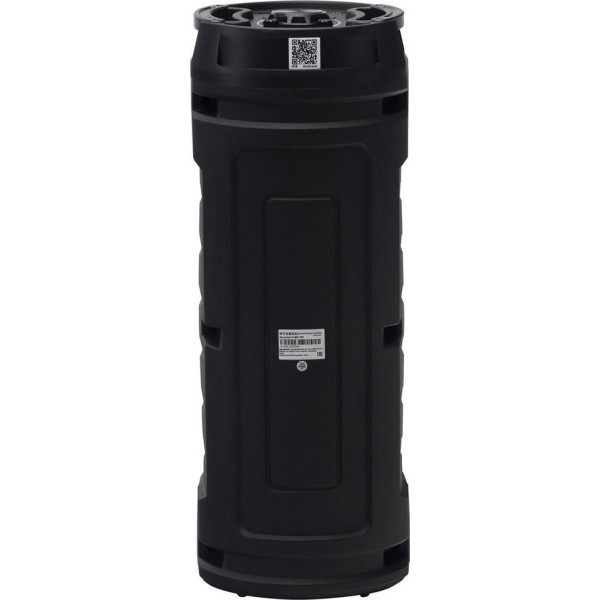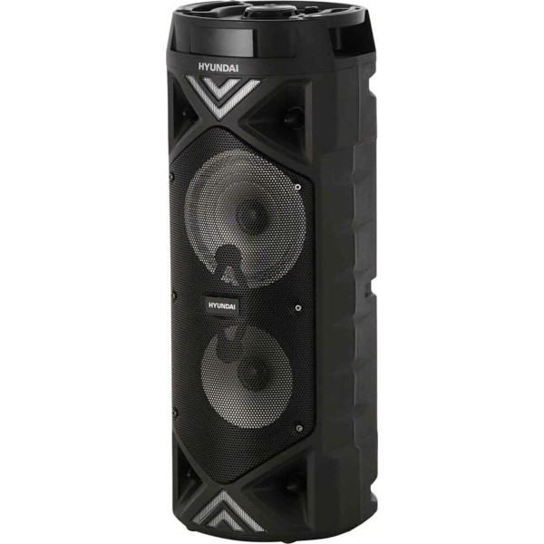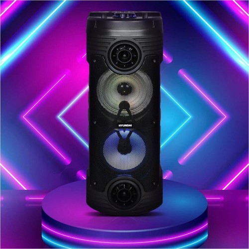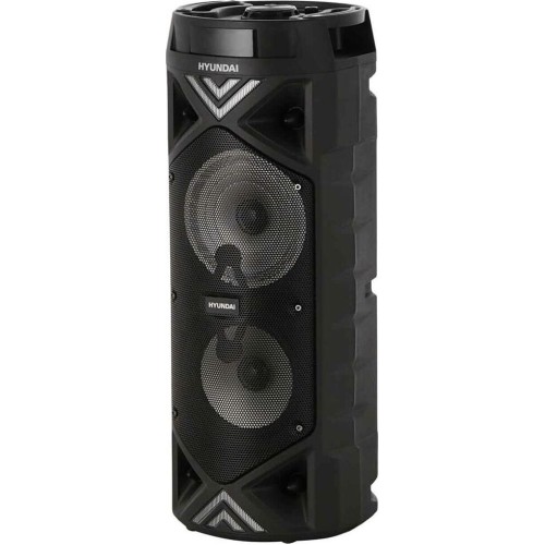 Портативная акустика HYUNDAI H-MC180 привлечет внимание каждого. Мощный звук, стильный дизайн и яркая RGB-подсветка зададут ритм вечеринке, поднимут настрой для активной тренировки и не дадут заскучать при вылазках на природу. Музыкальный центр умеет: воспроизводить музыку с внешних устройств и карт памяти; работать в качестве караоке; ловить радиоволны; регулировать частоты треков; выводить звук в наушники. Воспроизведение музыки За звучание отвечают два динамика и сабвуфер. Они воспроизводят музыку в диапазоне от 100 Гц до 20 кГц. Вы редко будете включать звук на максимум: 80 Вт мощности с лихвой хватает на большое помещение или для площадки на улице. Источником музыки могут быть карты памяти формата microSD, USB-накопители и внешние устройства. Старая техника подключается к акустике при помощи AUX-входа. Для беспроводного соединения с гаджетами встроен модуль Bluetooth. Когда домочадцы спят, используйте наушники. Правда, докупить их придется самостоятельно: гарнитура в комплекте не идет. Караоке Акустика H