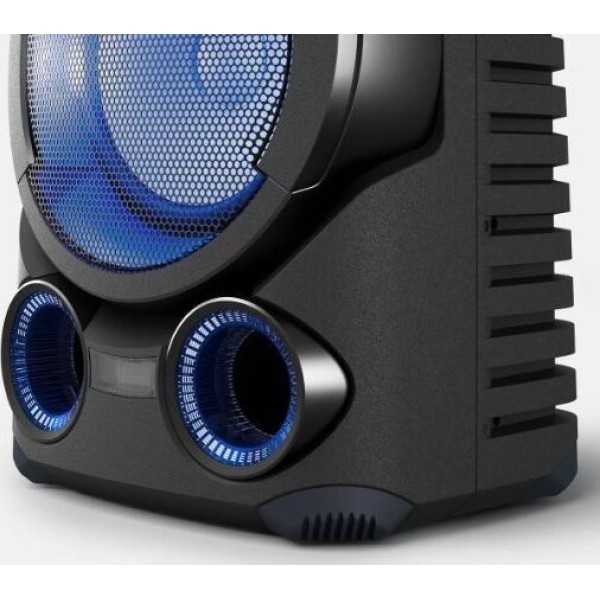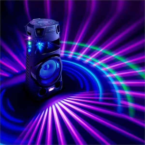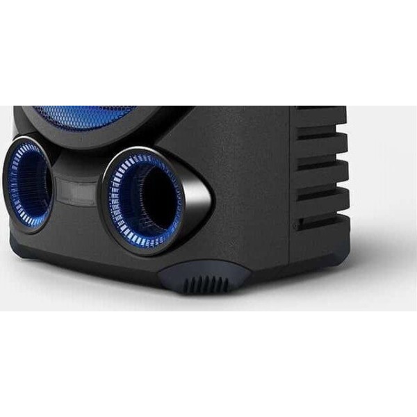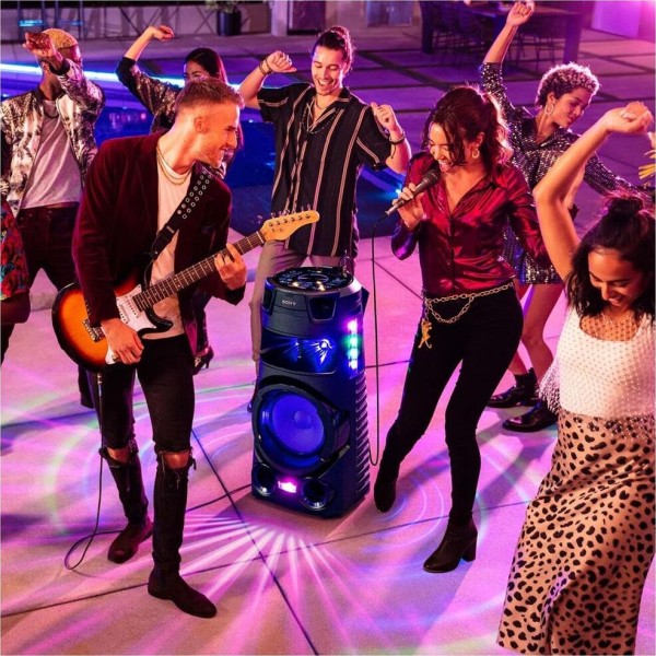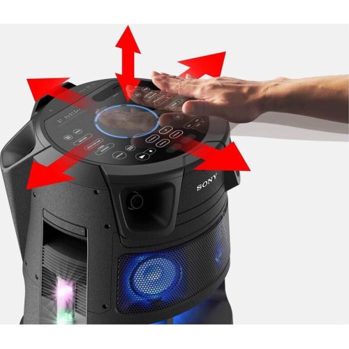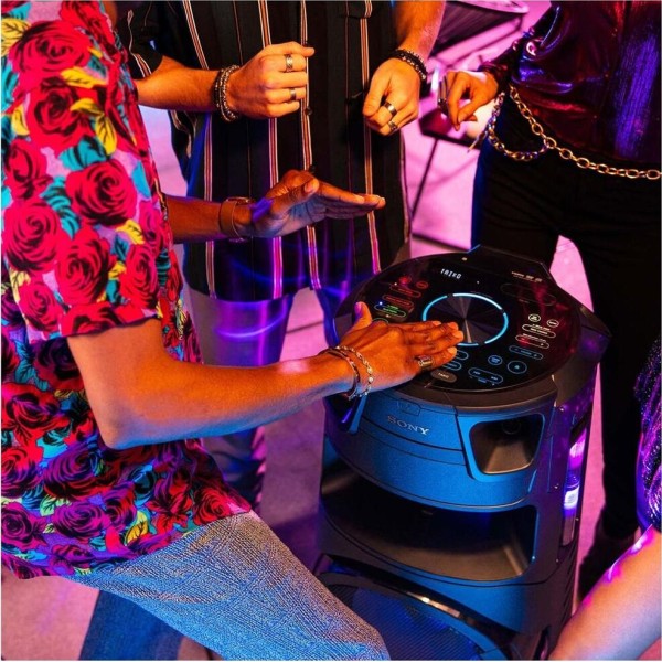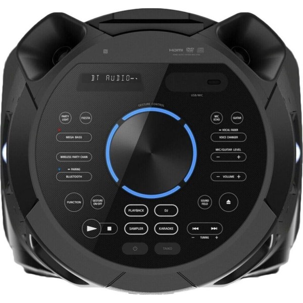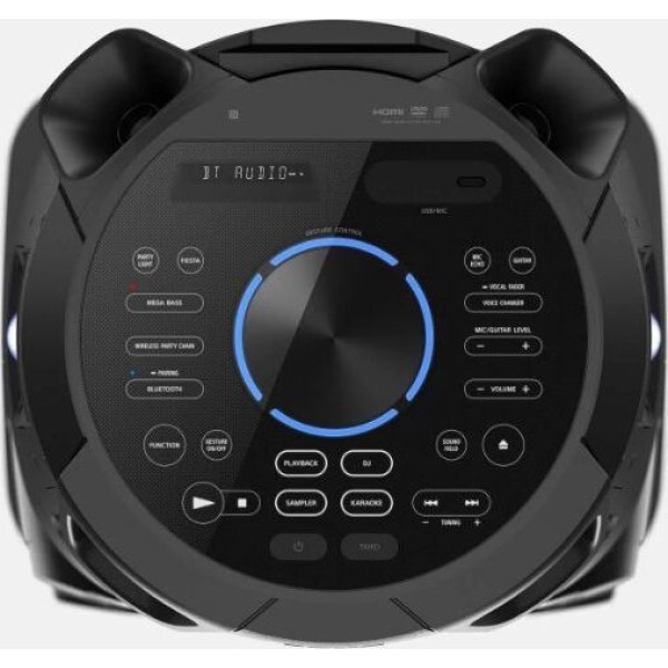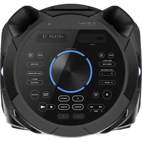 Бэк вокал, беспроводное подключение по Bluetooth с функцией Party Chain, Clearaudio+, блокировка от детей, замок лотка, колеса; высокочастотный динамик на задней панели; функции Karaoke: уменьшение громкости голоса на записи, лазерное шоу; пульт ду; управление жестами; защита от брызг для верхней панели, изменение голоса; подсветка динамика, изменение тональности, очки, громкость микрофонам, Echo (Эхо), NFC, A2DP, AVRCP; зарядка гаджетов от устройства; функция Mega Bass, технология цифрового улучшения звука DSEE