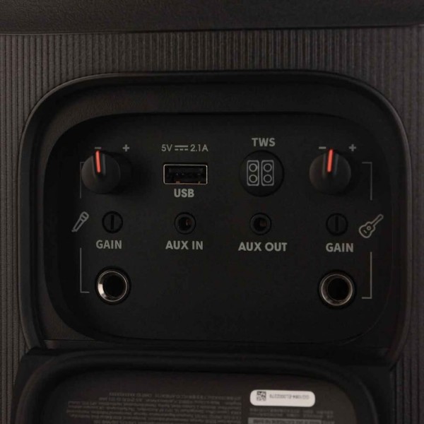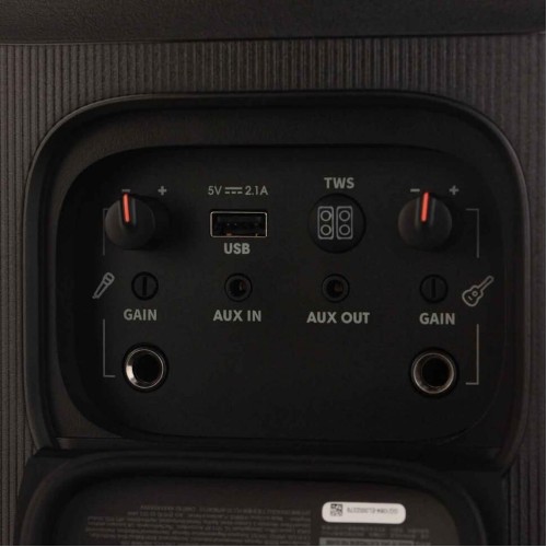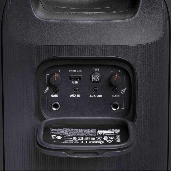 шнур питания (вилка для сети переменного тока и количество варьируются в зависимости от региона), гарантийный талон; 2 входа микрофон/гитара с регулировкой громкости; содержимое коробки: 1 колонка JBL PartyBox 110, 1 гарантийный талон, 1 колонка JBL PartyBox 110, 1 паспорт безопасности, шнур питания, 1 краткое руководство, краткое руководство, паспорт безопасности