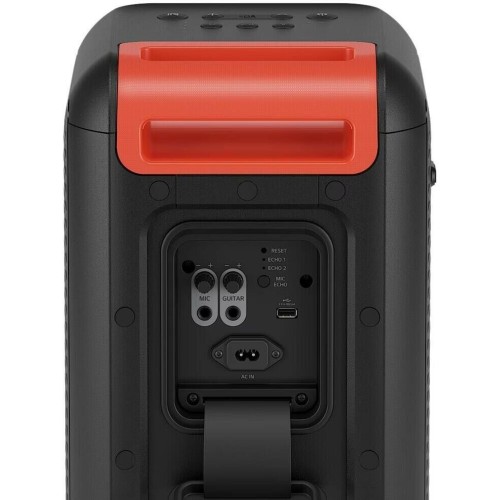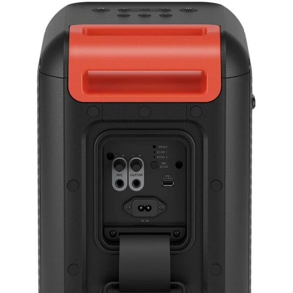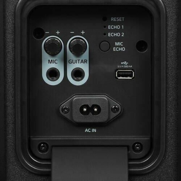 Cуммарная мощность; 200 Вт (RMS); Поддерживаемые аудио форматы; MP3, WMA; Эквалайзер; есть; Разъем USB; есть; Микрофонный вход; есть; Особенности; 2.1 канал (сабвуфер::100Вт, твитер 50Вт x 2). Вход для гитары (6.3mm). Пользовательский эквалайзер - только в приложении. Колеса; Караоке; есть; Поддержка Bluetooth; поддерживается; Цвет; черный; Размеры (основной блок); 289 х 570 х 280 мм