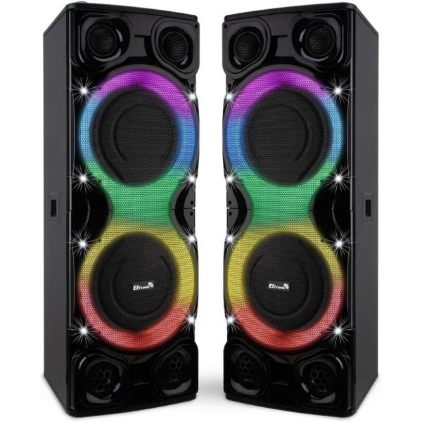 "Мощность: 400W RMS / 4000W PMPO Динамики (размер): 12 дюймов 4 штуки (общее) Частоный диапазон: 50HZ --- 20KHZ Коэффициент сигнал / шум: 70db Расширения: USB, AUX IN, Bluetooth 5.3, Комплектация: Адаптер питания Инструкция Пульт ДУ, 2 микрофона, инструкция Размер упаковки: Ширина - 46 см Высота - 121 см Глубина - 46 см Вес - 60 кг"