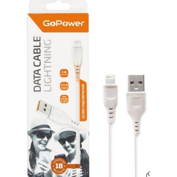Кабель GOPOWER (00-00018567) GP01L USB (m)-Lightning (m) 1.0м 2.4A белый