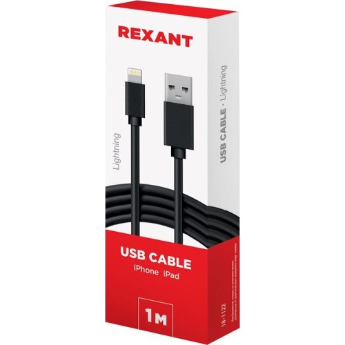 Дата-кабель REXANT (18-1122) Кабель USB-Lightning /PVC/black/1m/REXANT