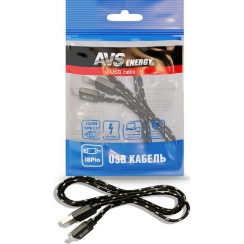 Кабель AVS IP-521 для iphone 5 (1м) (плоский текстиль)