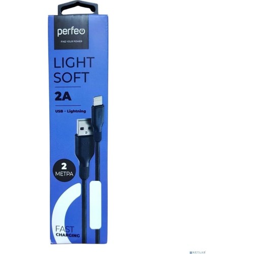 Кабель PERFEO (I4319) USB A - Lightning, 2A, черный, 2 м., Light SOFT