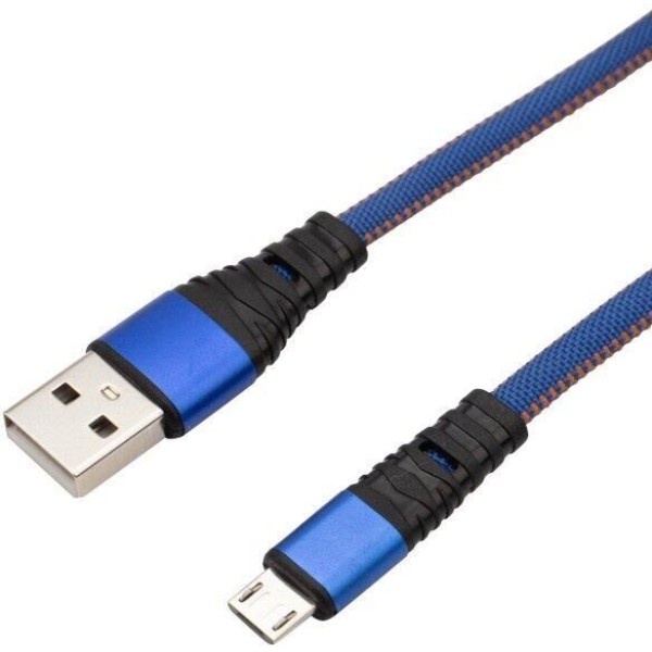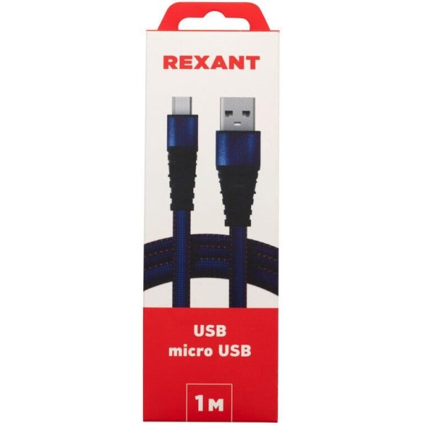 Дата-кабель REXANT (18-1163) Кабель REXANT USB-microUSB 1 м, плоский провод, синяя джинсовая оплетка