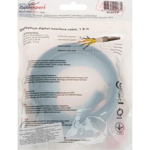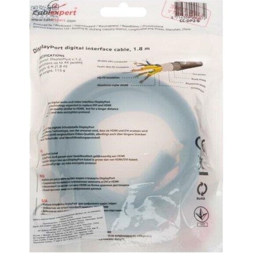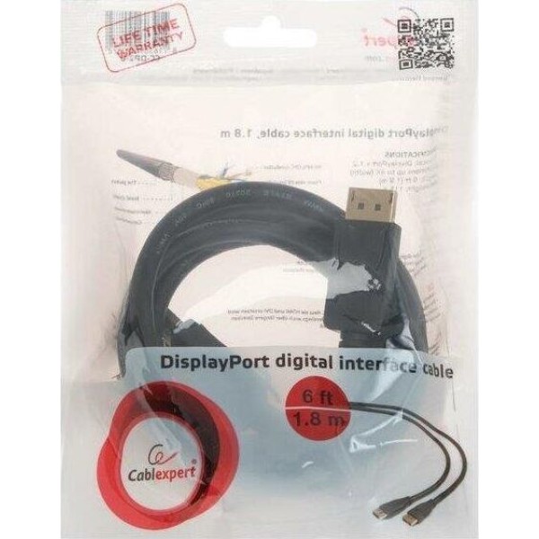 [кабели] Кабель DisplayPort Gembird/Cablexpert, v1.2 (скорость передачи до 21.6Гбит/с), 1.8м, 20M/20M, черный, экран (CC-DP2-6)