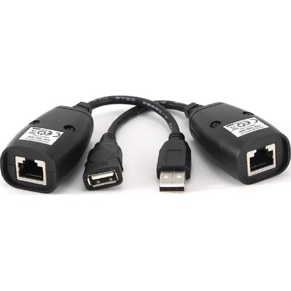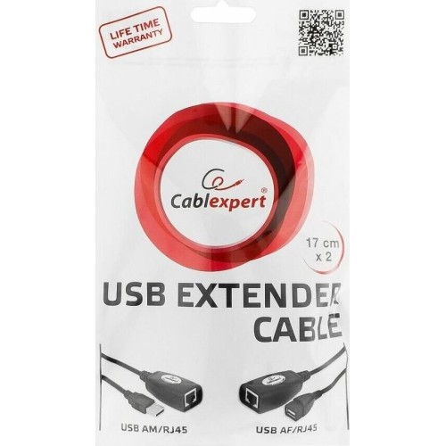 Удлинитель USB 2.0 по витой паре Cablexpert UAE-30M USB AM-AF/RJ45Fx2. Описание Позволяет удлинить рабочее расстояние USB порта до 30 метров. Работает с помощью сетевых кабелей категорий 6CAT или CAT5E. Не требуется драйверов для установки. Не требуется дополнительных источников питания. Технические характеристики USB 1.1 (совместим с USB 2.0) Позволяет удлиннить рабочее расстояние USB порта до 30 метров Работает с помощью сетевых кабелей категорий 5E или 6 Не требует драйверов Не требует дополнительного