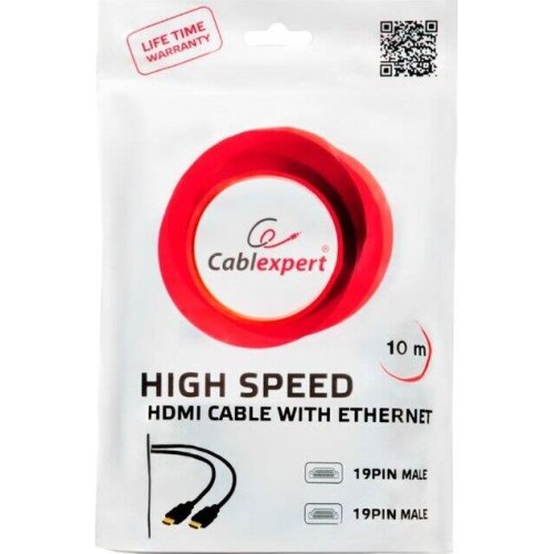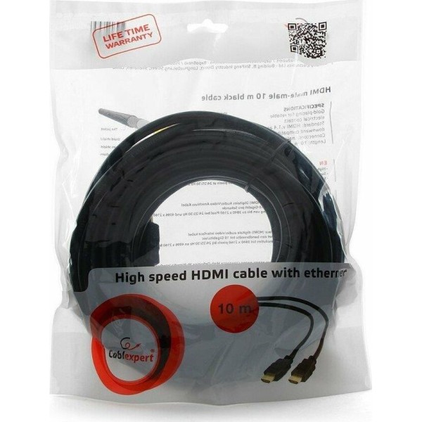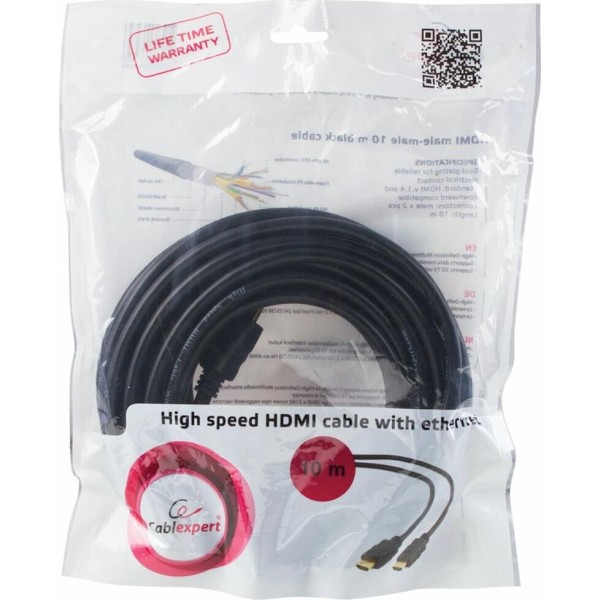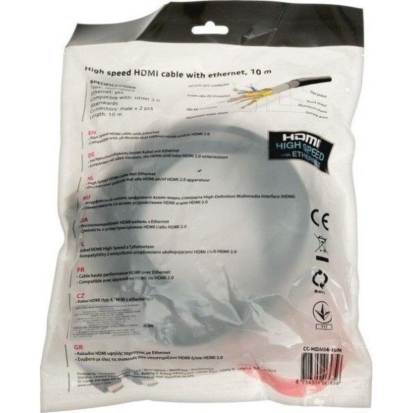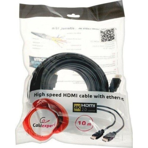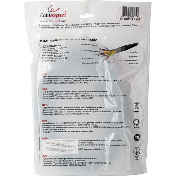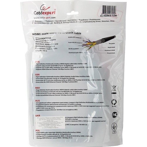 [кабели] Кабель HDMI Gembird, 10м, v2.0, 19M/19M, черный, позол.раз., экран, пакет [CC-HDMI4-10M]