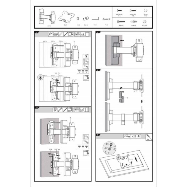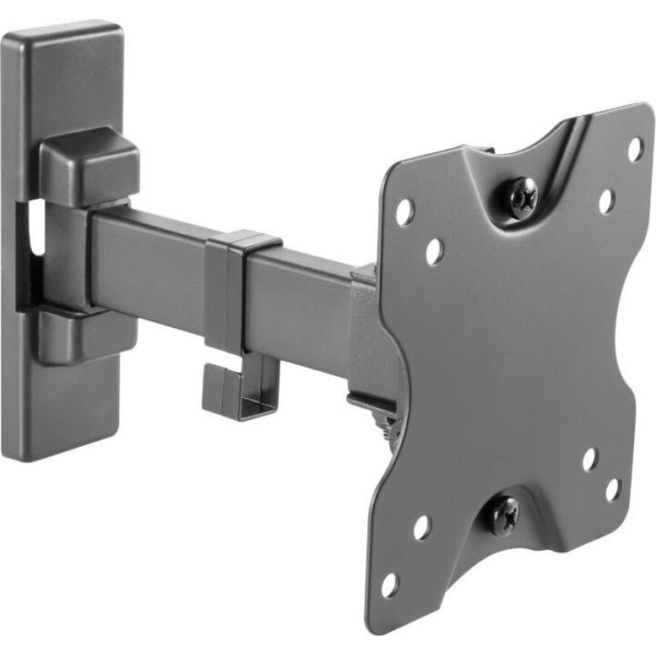 Диагональ экрана: 13"-27". VESA: 75x75, 100x100. Максимальная нагрузка: 20 кг. Расстояние от стены: 50-180 мм. Угол поворота: +90°~-90°. Угол наклона: +5°~-12°. Уровень экрана: +3°~-3°. Материал: холоднокатаная сталь, пластик. Протестировано весом в 2 раза больше максимально допустимого. Плавно и легко наклоняется и поворачивается на шарнирах. Встроенная регулировка уровня и индикатор поворота. Конструкция панели с VESA съёмная для лёгкой установки.