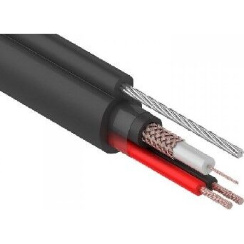 кабель д/видеоанаблюдения REXANT (01-4107) Кабель для видеонаблюдения КВК-П + 2х0,75мм + ТРОС (7*0,4мм), 305м., черный, OUTDOOR