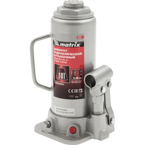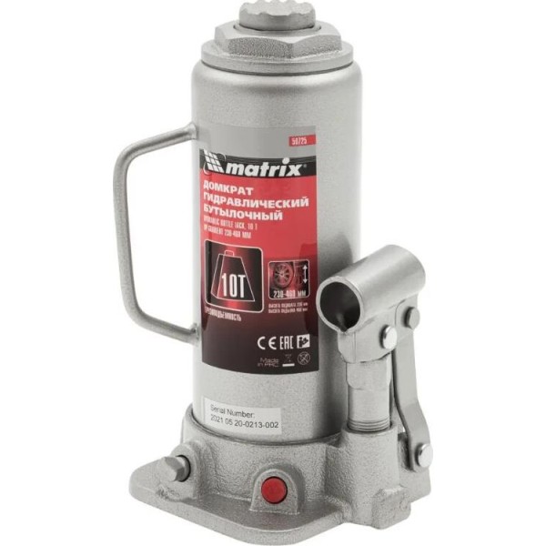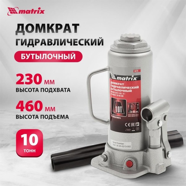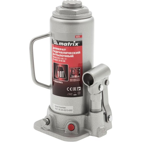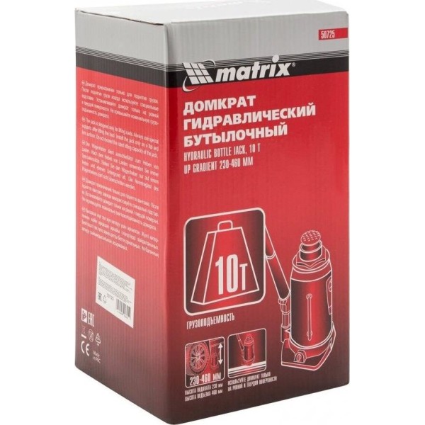 Домкрат MATRIX Домкрат гидравлический бутылочный, 10 т, H подъема 230-460 мм, 50725