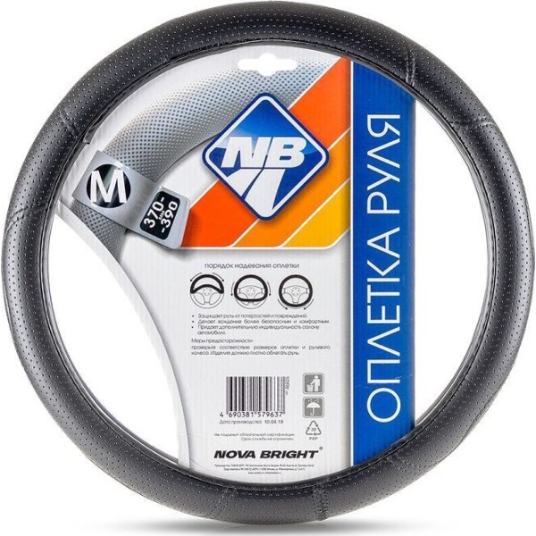 Оплетка на руль NOVA BRIGHT Оплетка рулевого колеса (M) экокожа, черная перфорированная с рельефной строчкой 47357