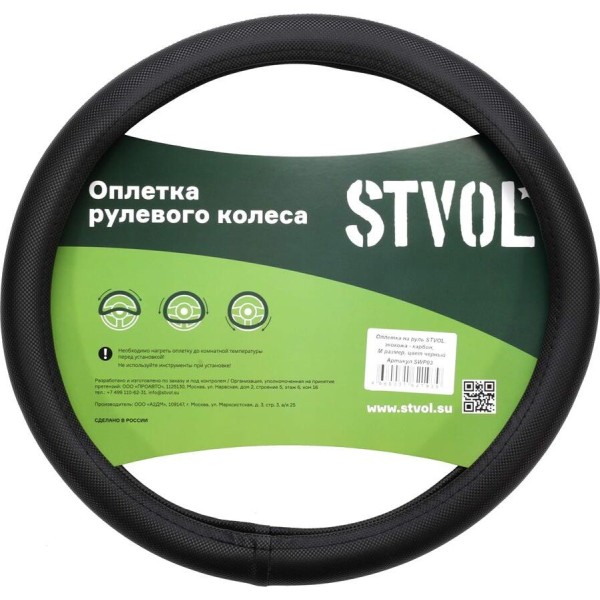 Оплетка на руль STVOL SWP03 экокожа - карбон, М размер, черный