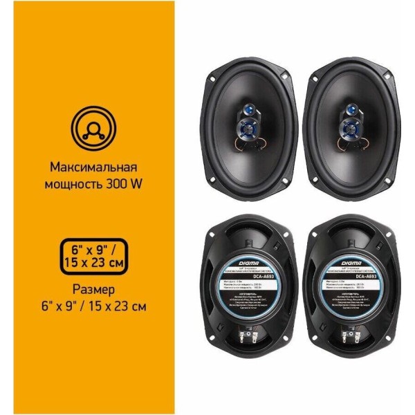 Тип акустической системы коаксиальные. Количество колонок в комплекте 2. Частотный диапазон 65Гц-20КГц. Количество частотных полос: трехполосные. Форма динамиков овальная. Размер динамика 15x23 см (6x9 дюйм.). Номинальная мощность 100 Вт. Максимальная мощность 300 Вт. Чувствительность 90 дБ. Импеданс 4 Ом. Глубина установки 87 мм.