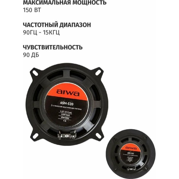 Тип двухполосная акустическая система Размер динамика 5.25” (13.5 см) Номинальная мощность 45 Вт Максимальная мощность 150 Вт Диапазон частот 100 ~ 20K Гц Импеданс 4 Ом Чувствительность 90 дБ