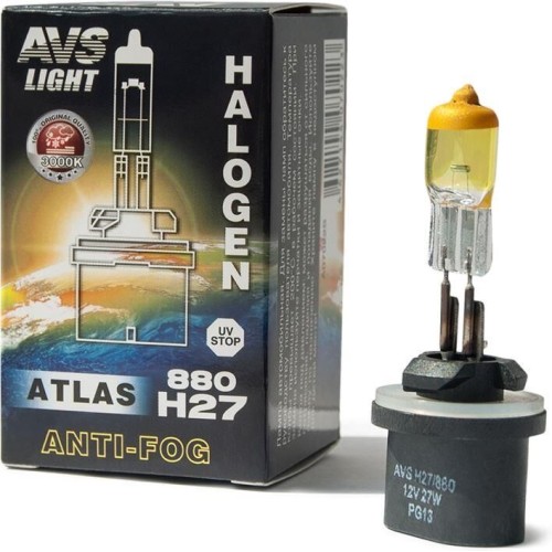 AVS Галогенная лампа ATLAS ANTI-FOG BOX желтый H27/880.12V.27W.коробка 1шт