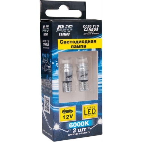 AVS C026 T10/белый/ (W2.1x9.5d) CANBUS 3W PSB, блистер 2 шт