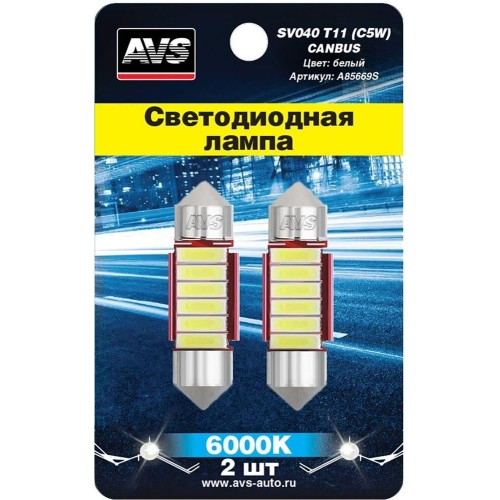 AVS SV040 T11/белый/ (SV8,5) CANBUS 6 SMD 7020 31мм 12V., блистер 2 шт