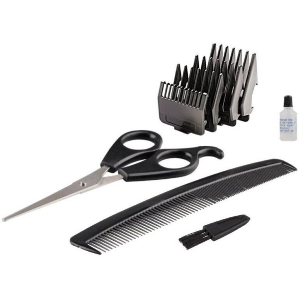 Питание сеть. Максимальная длина стрижки 12 мм. Материал лезвий высококачественная сталь. Минимальная длина стрижки 3 мм. Способ регулировки длины регулятором и сменой насадок. 4 насадки. Число установок длины 4. Аксессуары: адаптер, смазочное масло, расческа, ножницы, щеточка.