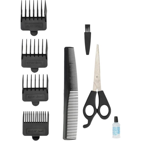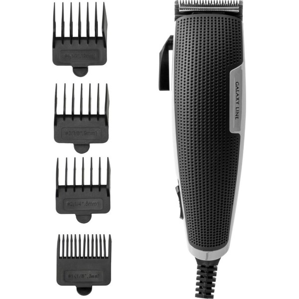 Набор для стрижки, мощность 15 Вт, лезвия из нержавеющей стали, ширина лезвия 45 мм, рычаг регулировки длины лезвия, 4 насадки-расчески, подвесная петля, эргономичный дизайн, номинальное напряжение 220-240 В ~, номинальная частота 50 Гц