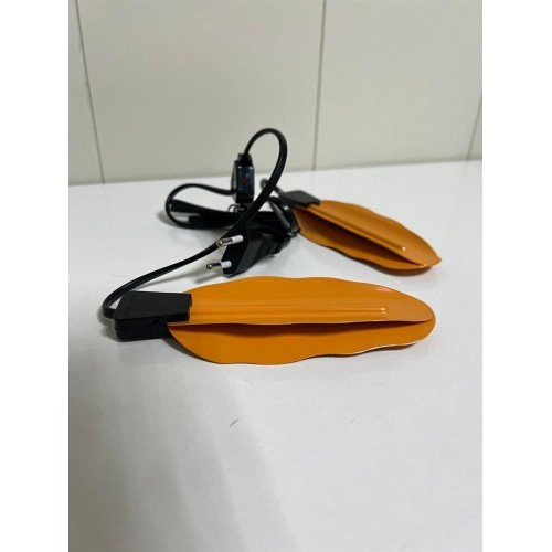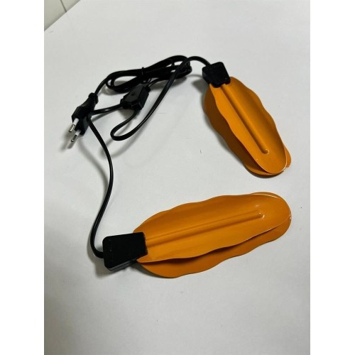 Номинальная потребляемая мощность 12 Вт Рабочая температура 75°С Время нагрева до рабочей температуры 3-5 минут Время непрерывной работы 24 часа Материал: металл, пластик Цвет: оранжевый Световой индикатор работы Сушилка работает от обычной электрической сети Благодаря оптимальному нагреву обувь не пересыхает и не деформируется