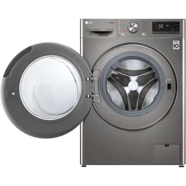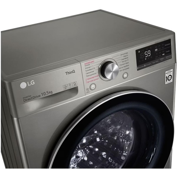 Стандартная стиральная машина с технологией AI DD, 10,5кг. Цвет серебристый. Габариты Ш/В/Г 600/850/565 мм. Вес 66 кг. Управление электронное. Максимальная скорость отжима 1400 об/мин. Тип барабана пузырьковый. Диаметр загрузочного люка 30см. Детектор загрузки. Автобалансировка. Автоперезапуск. Инверторный мотор с прямым приводом. Мобильная диагностика Smart Diagnosis. Возможность управления через приложение LG ThinQ. Функция пара Steam. Wi-Fi. Количество программ 14/7. Класс стирки A. Максимальный уровень шума при стирке 71дБ. Расход воды 53л. Дисплей LED. Система пеноподавления.