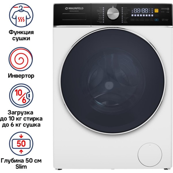 MAUNFELD Стиральная машина MFWD14106WH03 класс: B загр.фронтальная макс.:10кг (с сушкой) белый инвертер