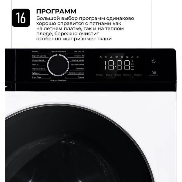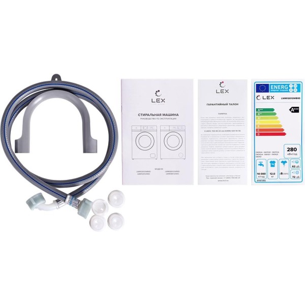 LEX Стиральная машина LWM12012WBlID, с фронтальной загрузкой, с паром, 12кг, 1200об/мин, инверторная