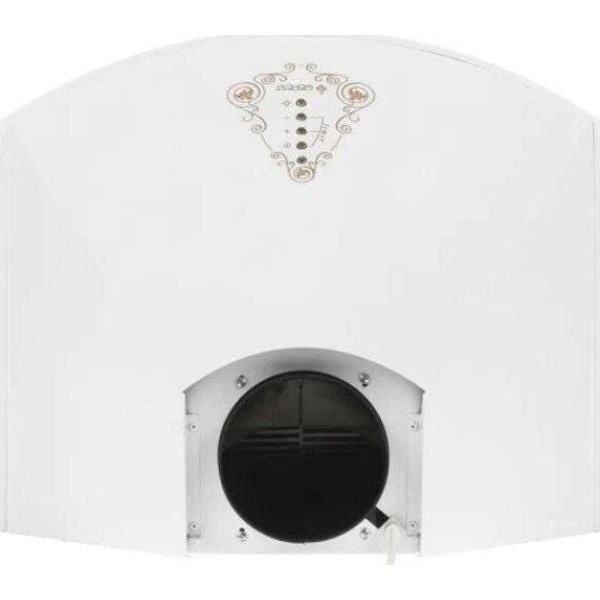 Масса (нетто/брутто), кг 9 / 10,8. Ширина, см 60. Глубина, см 50. Высота, см 30,5. Диаметр фланца воздуховода, см 15. Цвет модели Белый. Дизайн Ретро. Таймер. Конструкция воздухоочистителя Каминная. Материал вытяжки Эмаль. Тип управления Псевдосенсорное. Тип фильтра Металлический рамочный аэрозольный с угольной пропиткой. Уровень шума в максимальном режиме, дБА 78. Мощность узла освещения, Вт 2 x 25. 1 режим, м3/ч от 300 до 450 ± 15% 2 режим, м3/ч от 450 до 600 ± 15% 3 режим, м3/ч от 650 до 750 ± 15% 4 режим, м3/ч 1000 ± 15% Номинальная потребляемая мощность вытяжки, Вт от 270 до 320