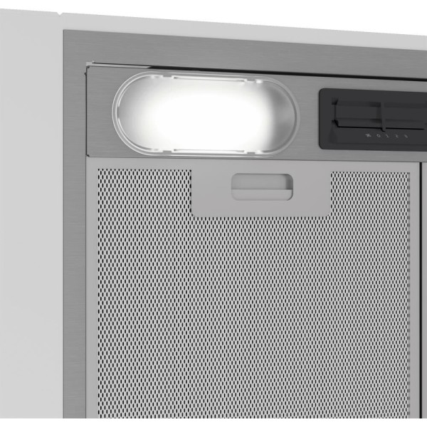 Размеры без упаковки (ВхШхГ), см - 23,8x53x31. Вытяжка полностью встраиваемая 52 см. Производительность 381 м3/ч; Уровней скорости: 3; жироулавливающий фильтр; тип освещения: LED; Тип управления - Механическое, уровень шума 61дБ, цвет - нержавеющая сталь