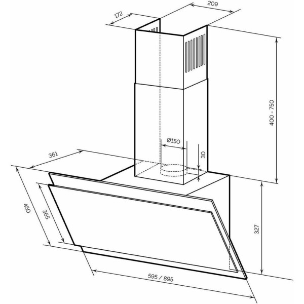LEX Вытяжка каминная Furia 600 белый управление: сенсорное (1 мотор)