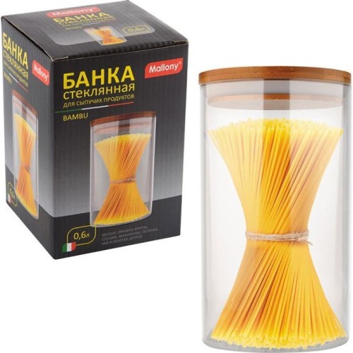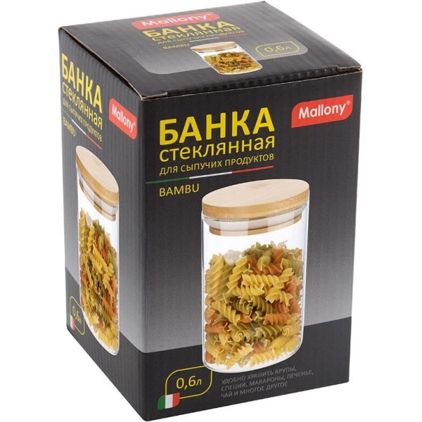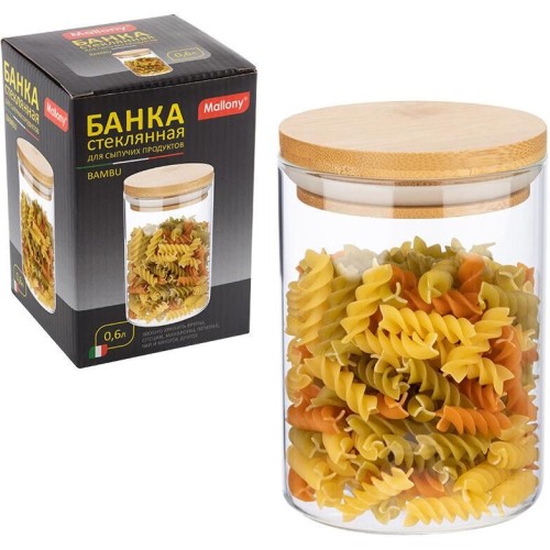 Стеклянная банка MALLONY Стеклянная банка для сыпучих продуктов с крышкой BAMBU, объем: 0,6 л (004450)