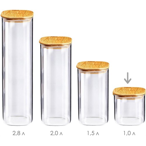 Тип банка Материал стекло Назначение для сыпучих продуктов, для чая и кофе Емкость прозрачная да В наборе крышка Материал крышки бамбук Банка выполнена их высококачественного стекла и оснащена герметичной крышкой. В ней удобно хранить крупы, чай, кофе, макароны, специи, сахар и многое другое. В прозрачной банке из стекла продукты всегда смотрятся красиво, а также это удобно - не нужно открывать банку, чтобы понять, что в ней. Практичный и современный дизайн банки делает ее довольно простой и удобной в эксплуатации. Такая банка для хранения станет незаменимым помощником на кухне