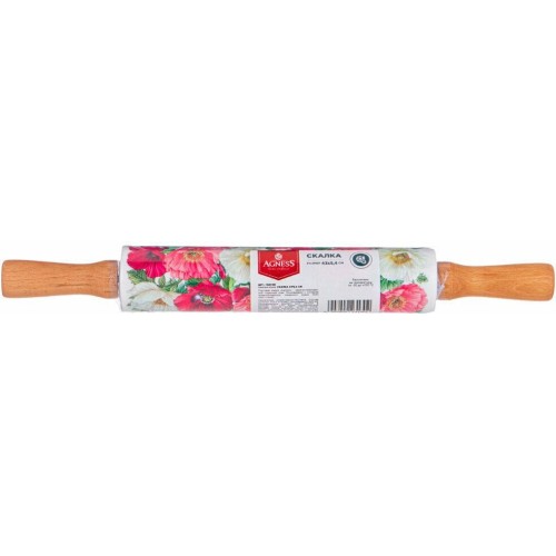 Скалка 43х5,4 см Agness (173733) Силиконовые скалки с принтом - уникальный продукт на российском рынке. Выразительные и яркие, они поднимут настроение и помогут настроиться на творческий лад. ХИТ сезона. - Эксклюзивный дизайн разработанный нашими дизайнерами. - Аксессуары сделаны из безопасного силикона и натурального дерева. - Не впитывают запахи. - Нужно минимальное количество муки, чтобы тесто не прилипало к скалке.