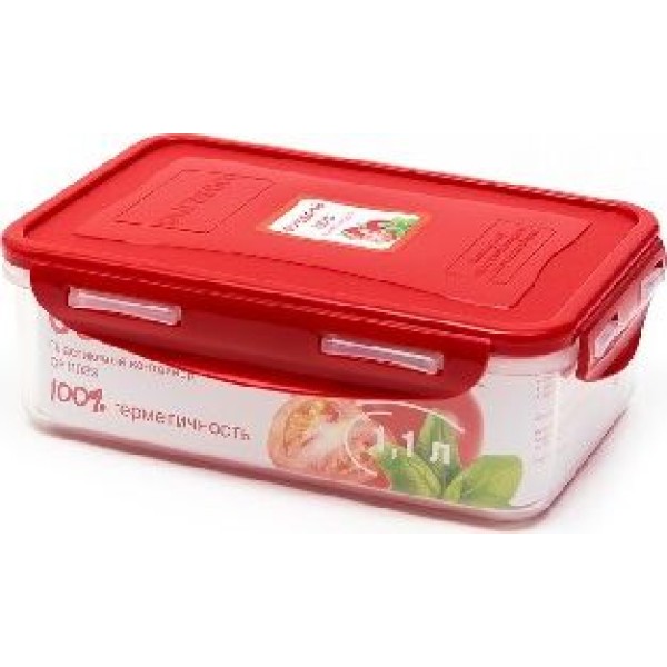 Пластиковый герметичный контейнер объемом 1,1 л. Форма контейнера: Прямоугольный. Материал контейнера: Пластик. Материал крышки: Пластик.