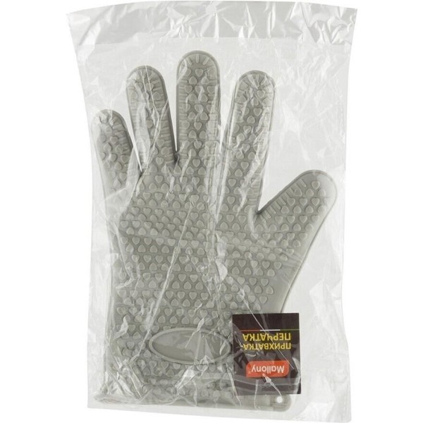 Прихватка-перчатка PRETTO (силикон) Размер: 27*14,5 см Вес: 120 гр Материал: силикон Назначение: для защиты рук от воздействия высоких температур. Универсальная форма прихватки дает возможность использовать ее как правой, так и левой рукой. Очень приятная на ощупь, невероятно гибкая, выдерживает большой перепад температур от -40°C до +230°С. Легко моется в посудомоечной машине. Удобно и прочно сидит на руке. С помощью такой прихватки ваши руки будут защищены от ожогов, когда вы будете ставить в печь или доставать из нее выпечку.