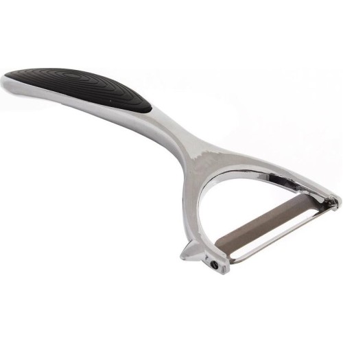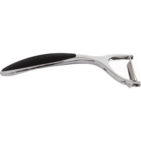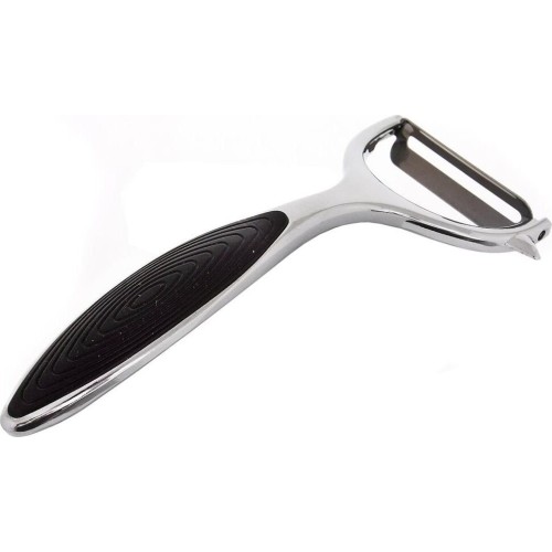 Овощечистка с горизонтальным лезвием с прорезин ручкой MODERNO, Mallony р-р 14,5*6,5*0,6 см материал — сплав цинка хромированный, ТПР, нерж сталь Вес — 0,082 кг Упаковка: цветная картонная подложка с подвесом, пакет